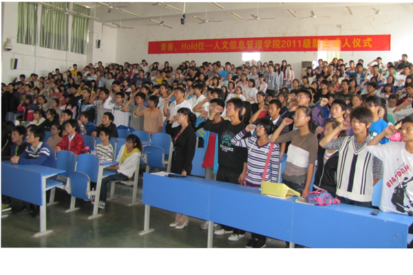 10 月 14 日中午 ,人文信息管理学院在 2506 教室举行“青春· HLOD 住” 2011 级新生成人仪式。