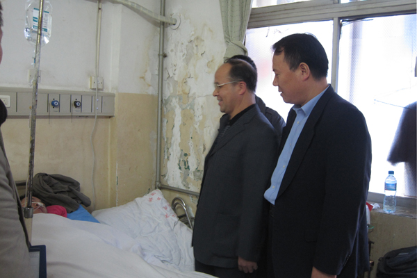 10 月 27 日 ,附属衡阳医院党委书记龙双才、副院长岳增辉自衡阳赶到中医附一院,看望罹患重病接受手术后的 2008 级中西医结合衡阳班李全有同学,送上慰问金 2000 元,并鼓励李全有增强信心,战胜病魔,早日返回衡阳...
