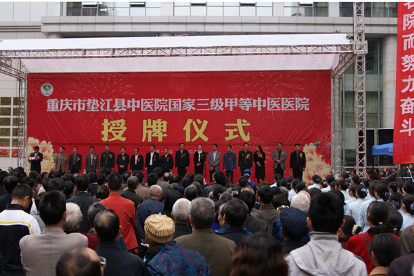 授牌仪式会场 重庆市人民政府副市长吴刚授牌 重庆市卫生局副局长方明金宣读文件 我校纪委书记秦裕辉讲话 中共垫江县委书记罗德讲话 垫江中医院院长刘明怀讲话 10 月 26 日 ,我校附属垫江医院“国家三级甲...