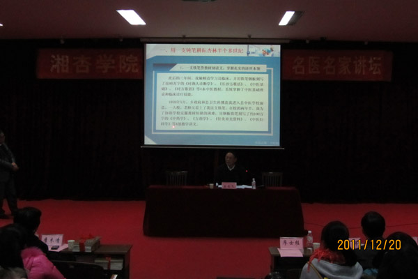 12 月 20 日下午 ,常德市名老中医吴忠文主任医师学术讲座暨赠书仪式于湘杏学院学术报告厅举行。