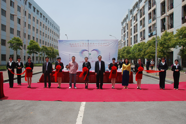 剪彩仪式 学生代表积极参与传递爱心 社区医院前人头攒动 4 月 26 日 上午,我校 2012 年长株潭社区专场招聘会暨菁苹果“梦翼计划”启动仪式在含浦校区隆重举行。