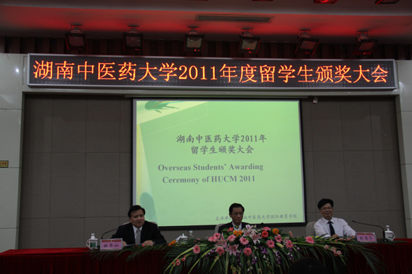 4 月 27 日下午,国际教育学院一楼报告厅花团锦簇,欢歌笑语,由国际教育学院举办的“2011 年湖南中医药大学留学生颁奖大会”在此隆重举行。