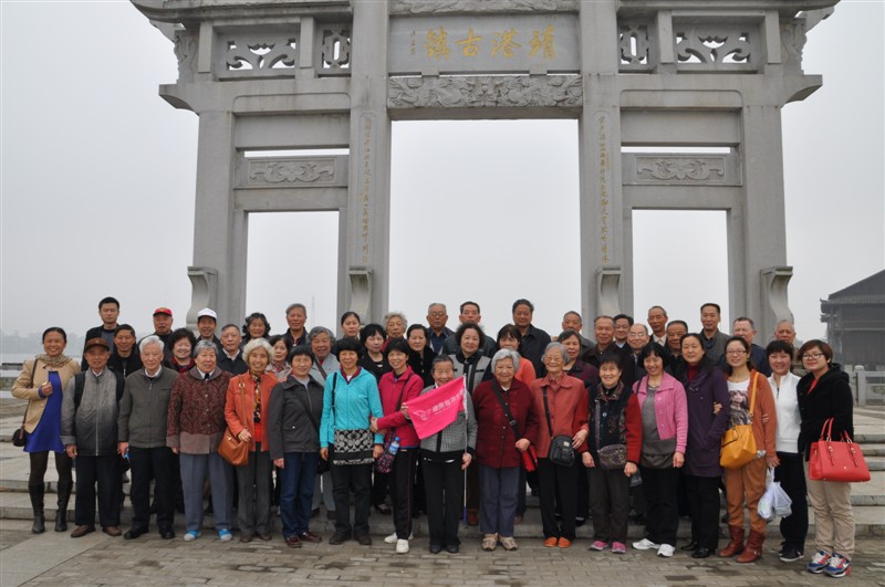 合影 92岁的金奶奶精神抖擞,神采飞扬 4 月 26 日,研究院离退休办组织近 5 0 名机关离退休同志到“中国历史文化名镇”湖南靖港古镇,开展“踏春访古一日游”活动。