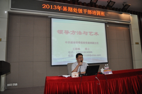 7 月 17 日 下午,在 含浦校区国际交流中心学术报告厅 ,学校邀请 省委党校、省行政学院党建教研部副主任王海峰副 教授为处级干部培训班学员讲授了《领导干部方法与艺术》。