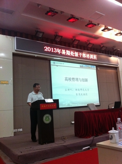 7 月 16 日上午,著名教育家、原湖南师范大学校长、原湖南涉外经济学院院长张楚廷教授应邀为处级干部培训班学员讲授《高校的管理与创新》。