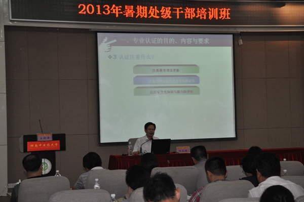 7 月 16 日下午,在含浦校区国际交流中心学术报告厅,大学党委副书记、副校长、研究院副院长黄政德教授为处级干部培训班的学员讲授了《认真做好专业认证工作,努力提高教育教学质量》。